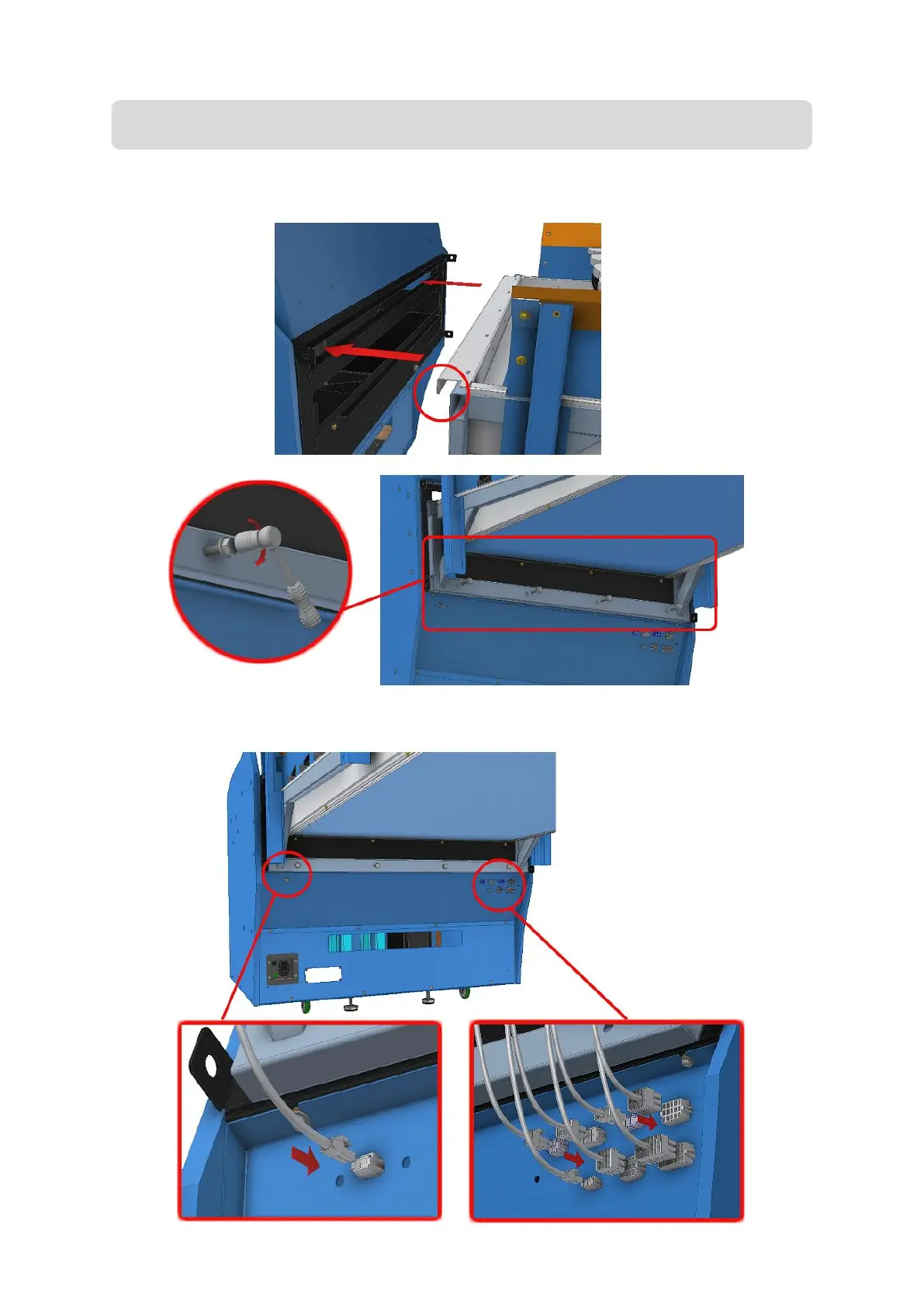 15. Plug in all 8 connectors on the left and right side, at the rear of the front cabinet.