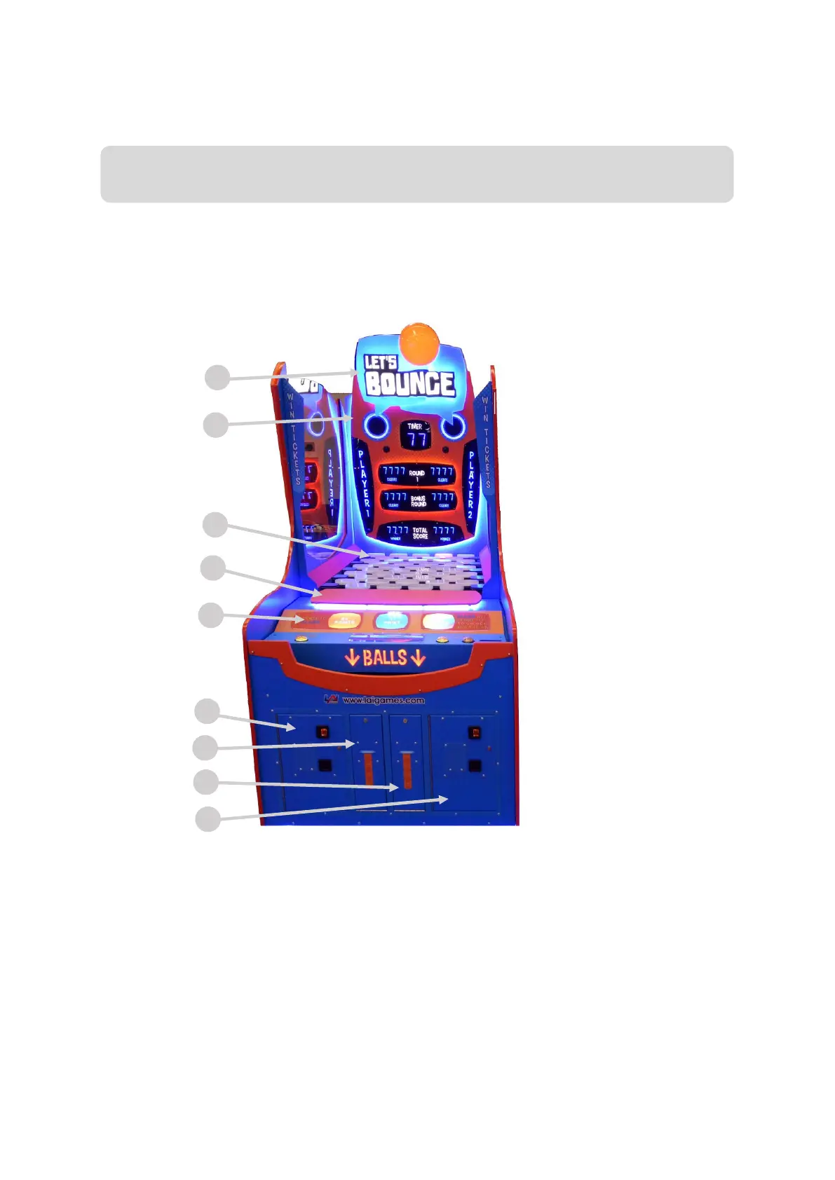 LAI Games Let’s Bounce - Section A: Service Instructions; Locating Serviceable Parts: Cabinet Front