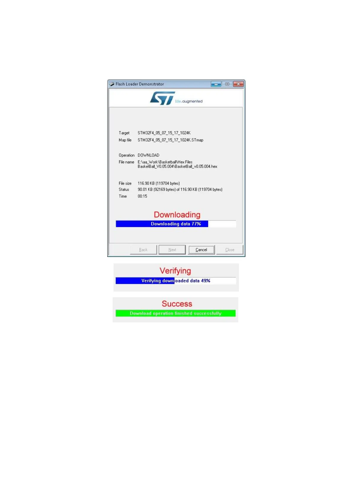 18. Once the progress bar is green and states “Download operation completed successfully,”