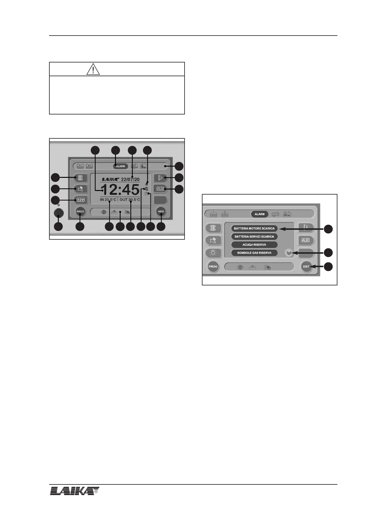 15) ALARM button: press to access ACTIVE ALARMS