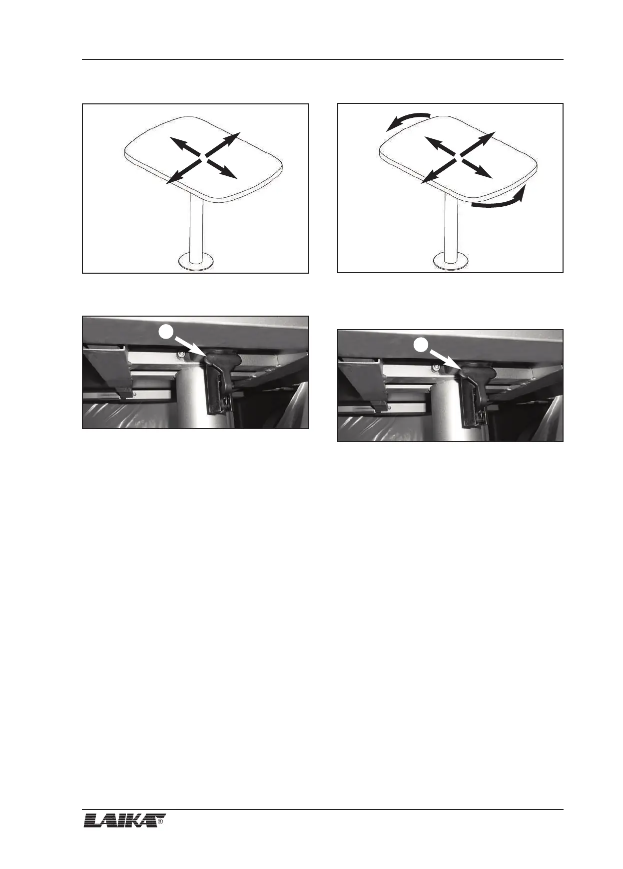The table top can be rotated and can slide in four direc-
