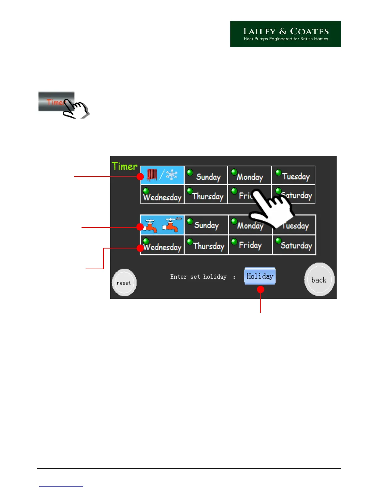 Touch and hold relevant day to access the timer settings for that day, the controller will