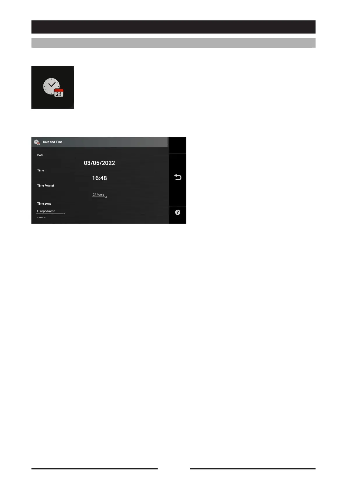 Press the icon to access the Date and Time settings