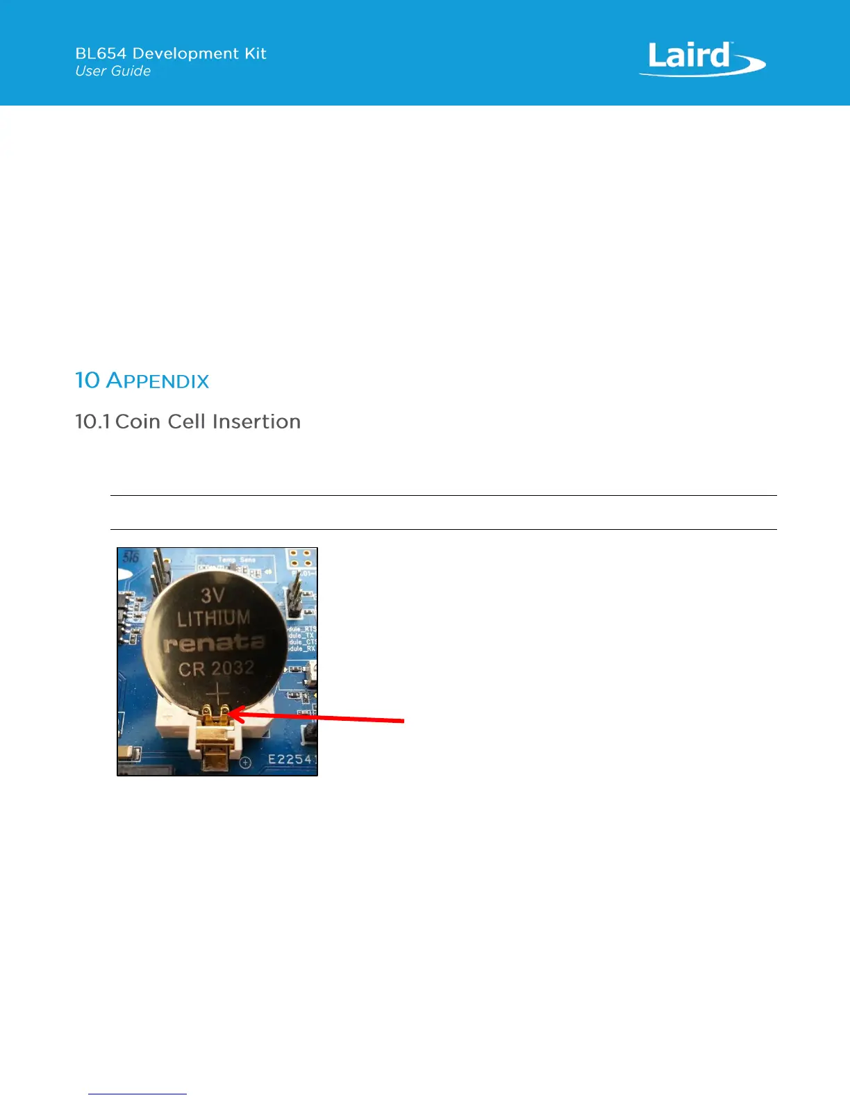 1. Push the coin cell against positive contact spring of holder J34 (on the back side of the dev board).