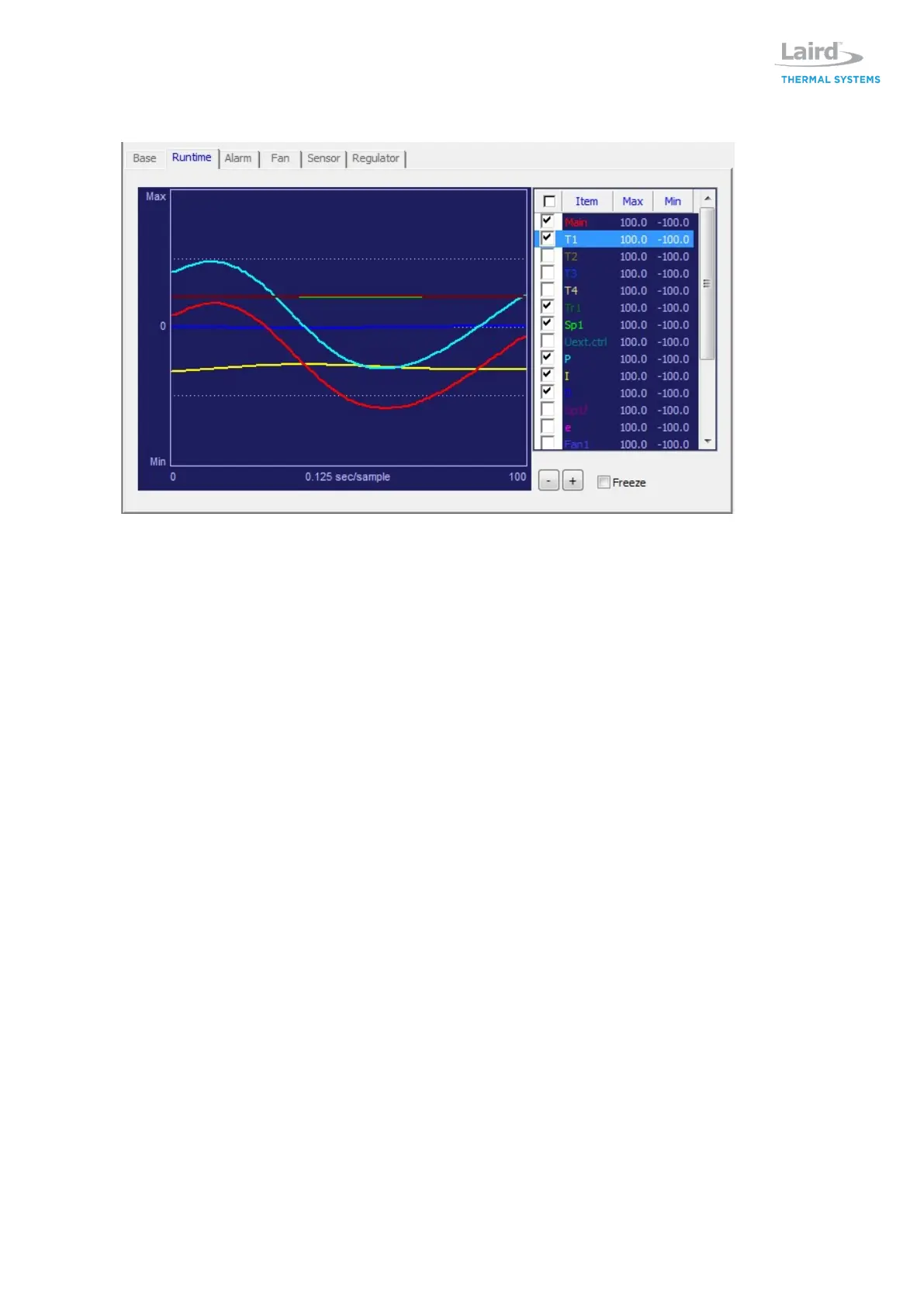 can be adjusted by pushing [+] or [-] buttons. The view can be frozen by clicking on the freeze box.