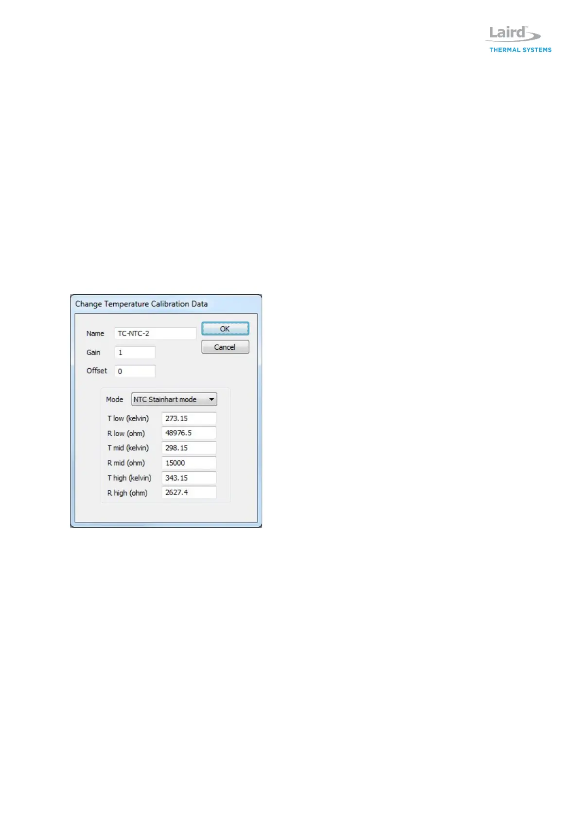 The Sensor tab allows user to specify thermistor. Laird Thermal Systems has programmed six