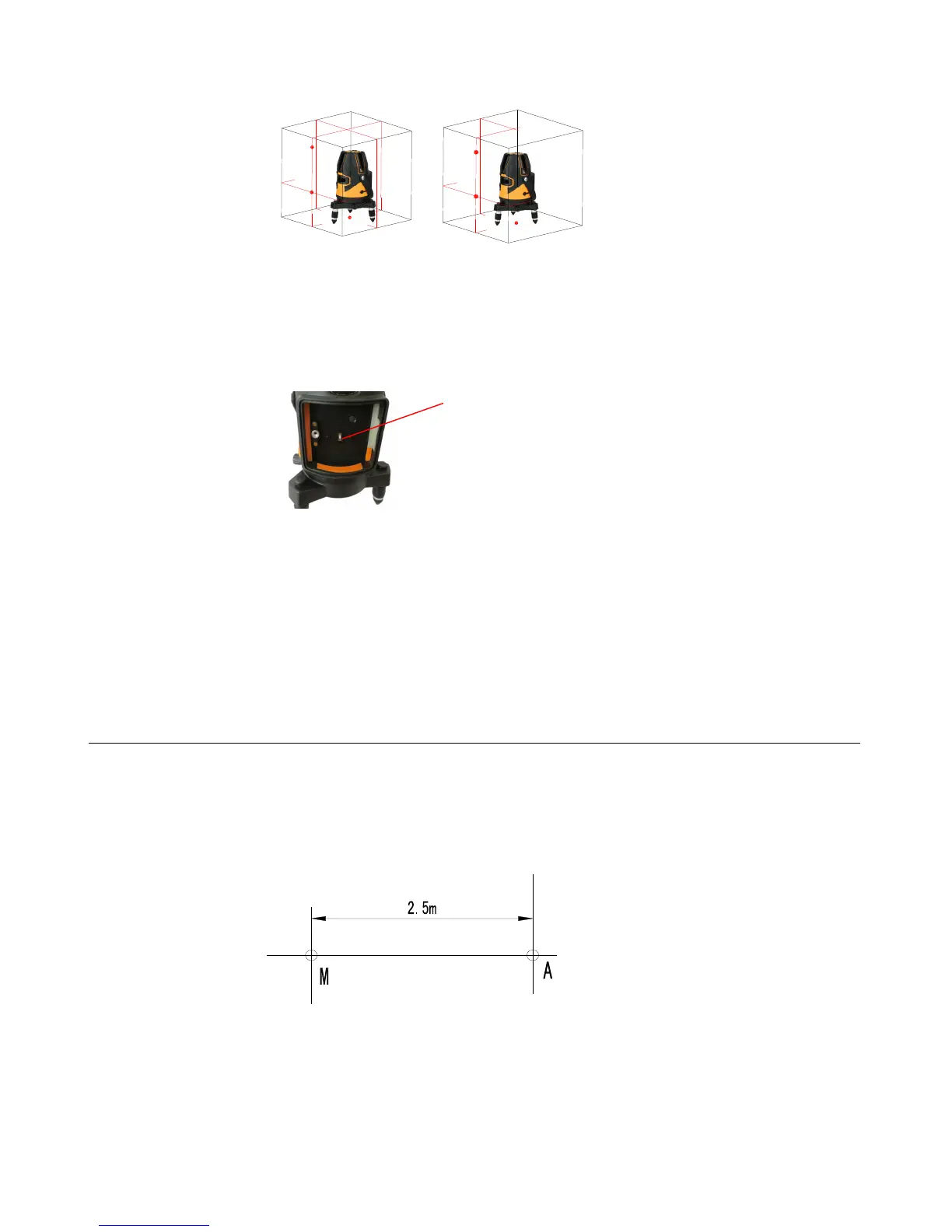 c) Open all laser lines; there will be cross laser line on the wall, set the center of cross line as A dot.
