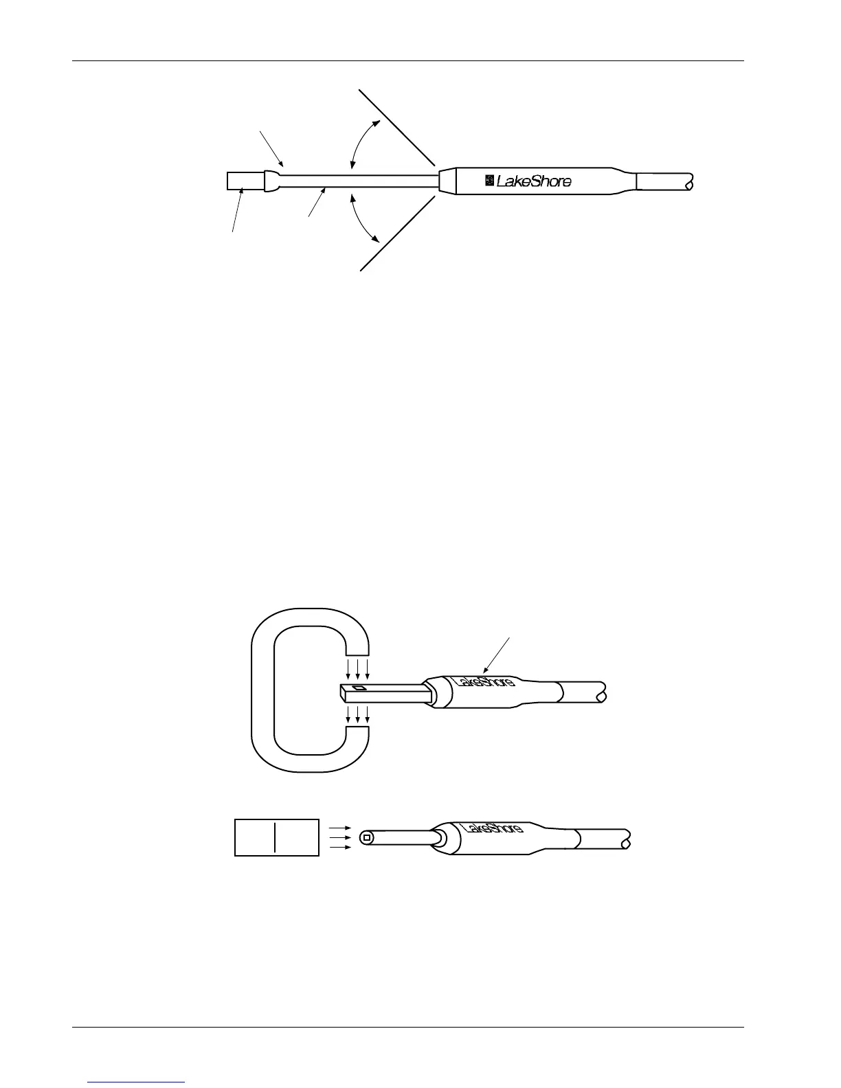 gaussmeter. On a transverse probe, the Lake Shore name printed on the handle indicates the side for