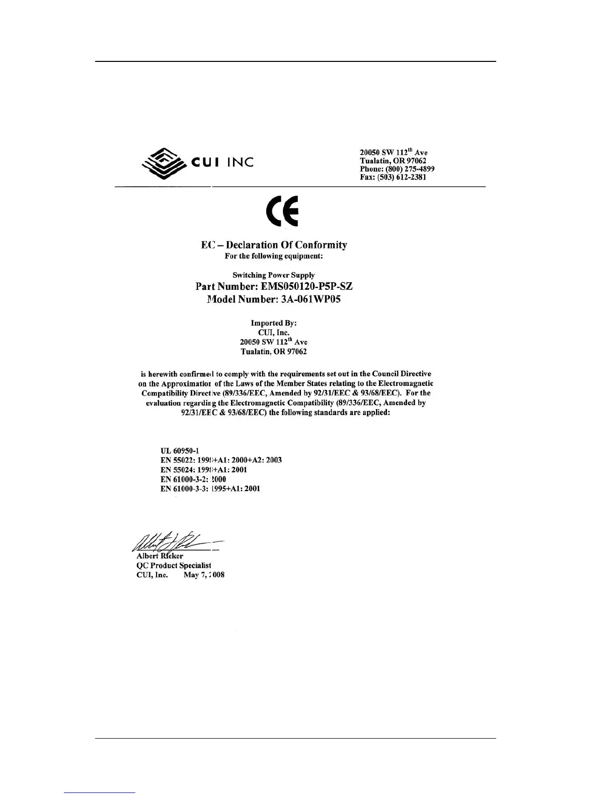 B1.5 CE DECLARATIONS FOR DISCONTINUED POWER SUPPLIES