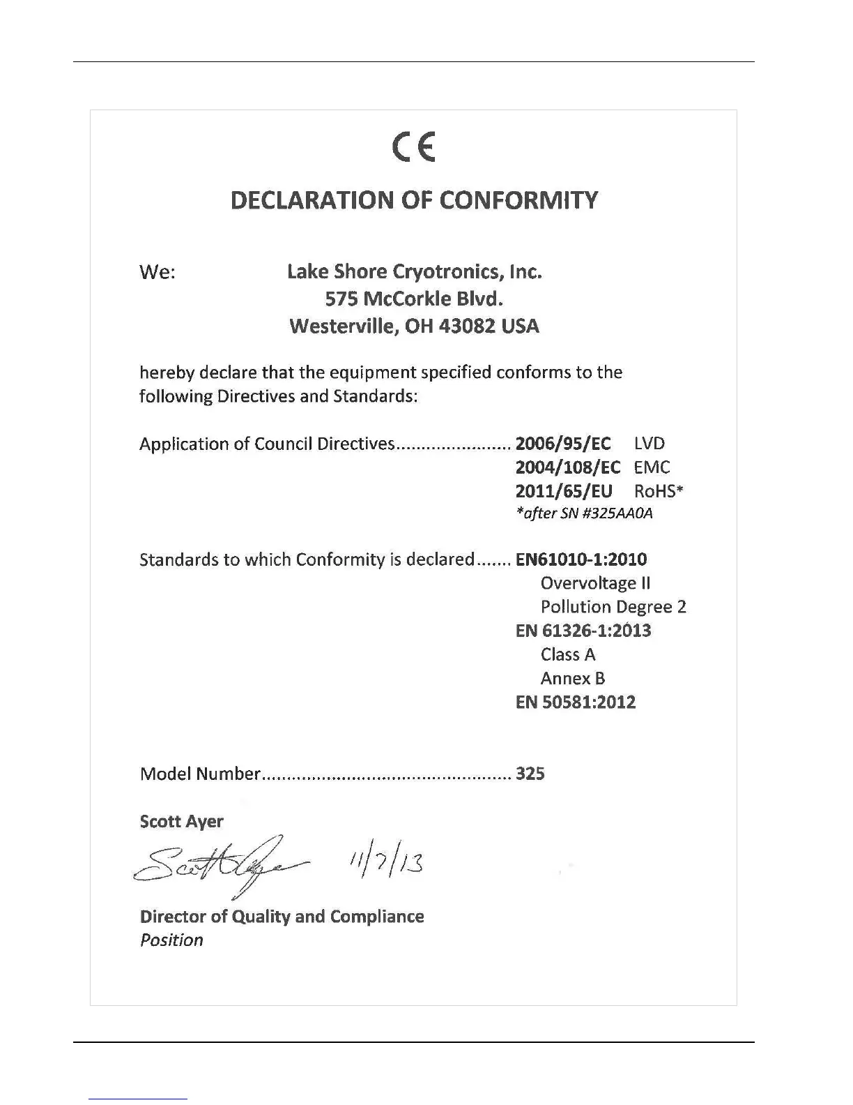 Lake Shore Model 325 Temperature Controller User’s Manual