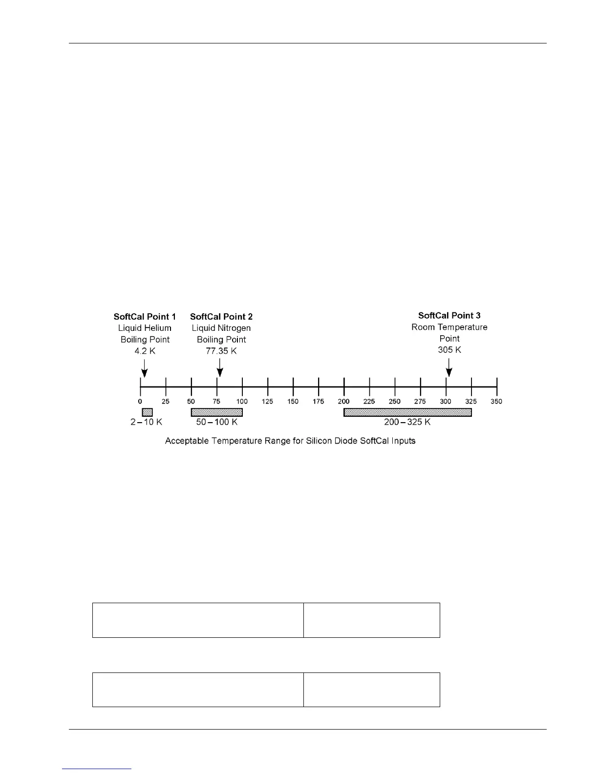 Two-point SoftCal calibrations for applications above 30 K are performed at liquid nitrogen (77.35 K) and room