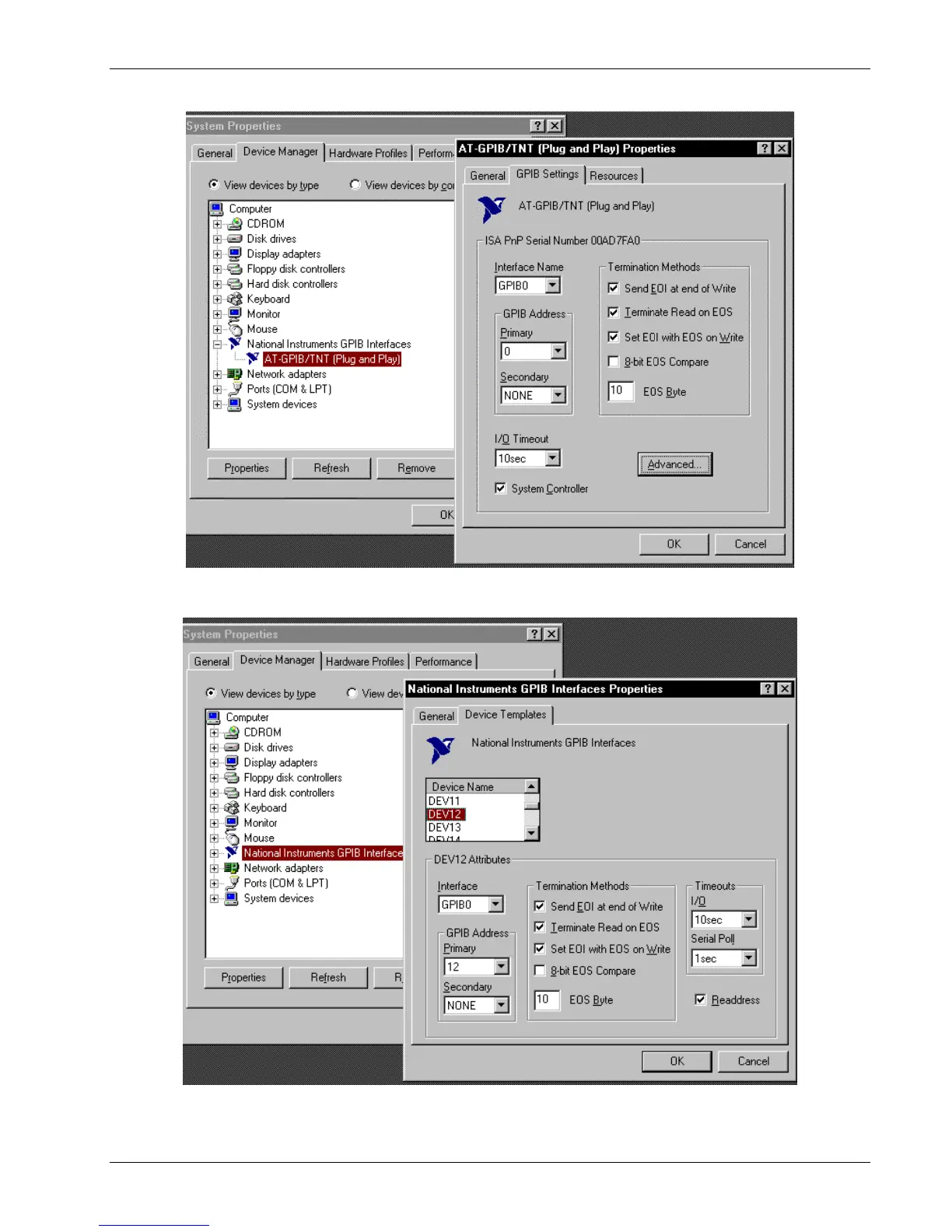 Lakeshore 325 - GPIB Setting Configuration; DEV 12 Device Template Configuration