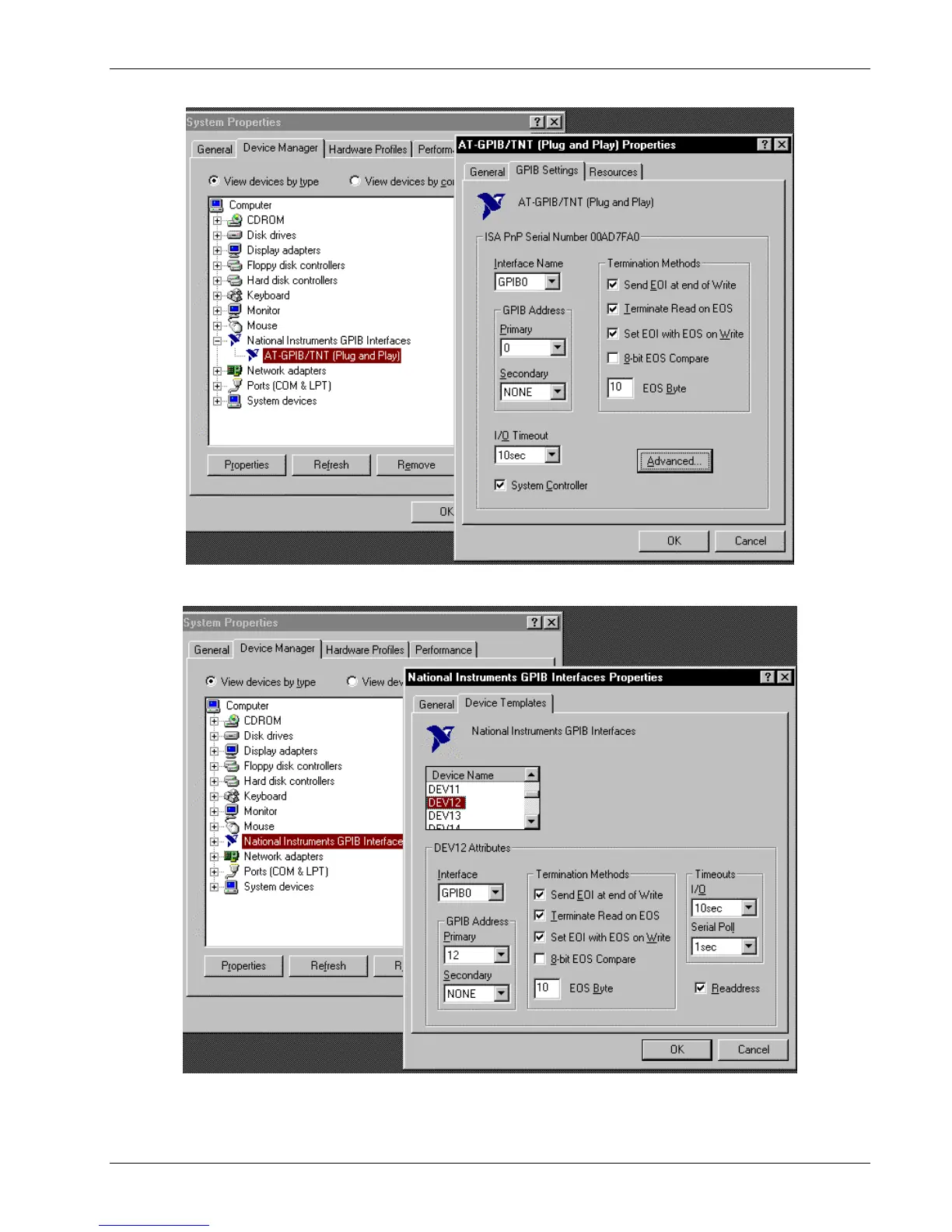 Lakeshore 340 - GPIB Setting Configuration; DEV 12 Device Template Configuration