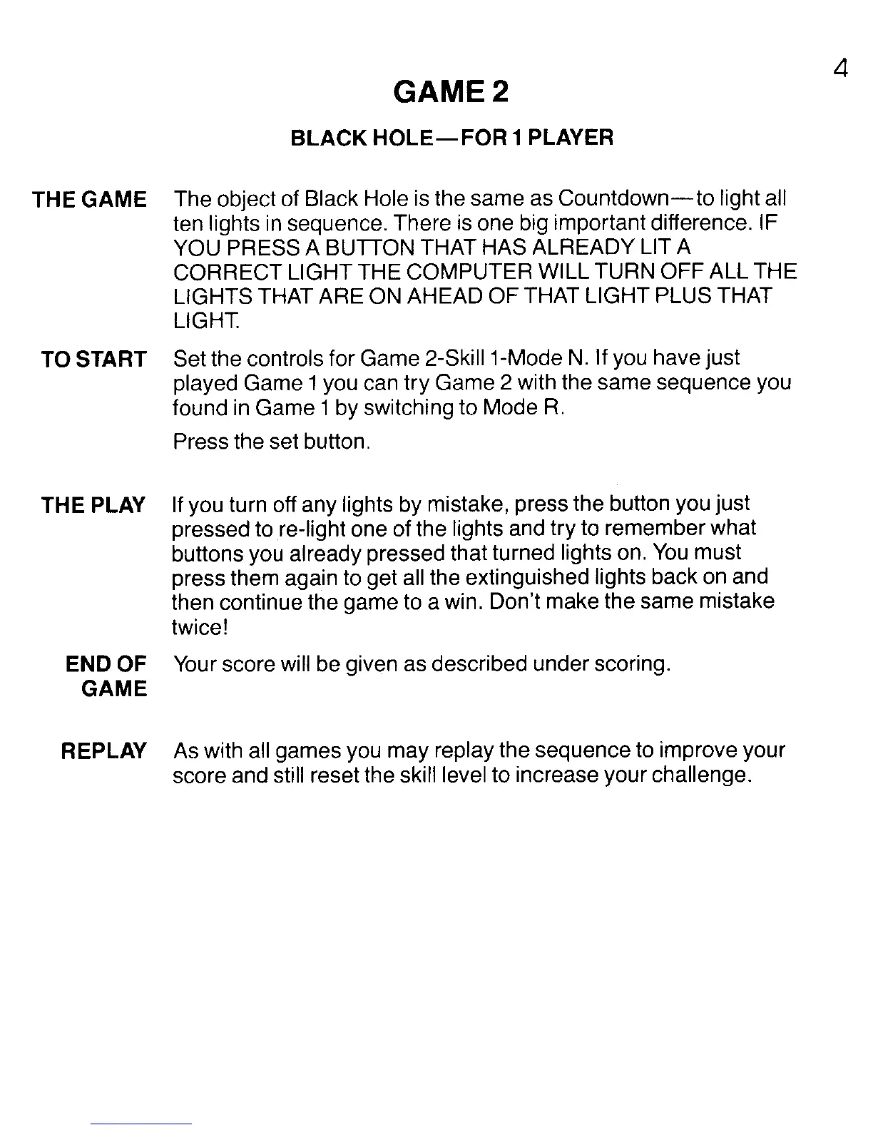 Lakeside Computer Perfection - Game 2 Black Hole-For 1 Player