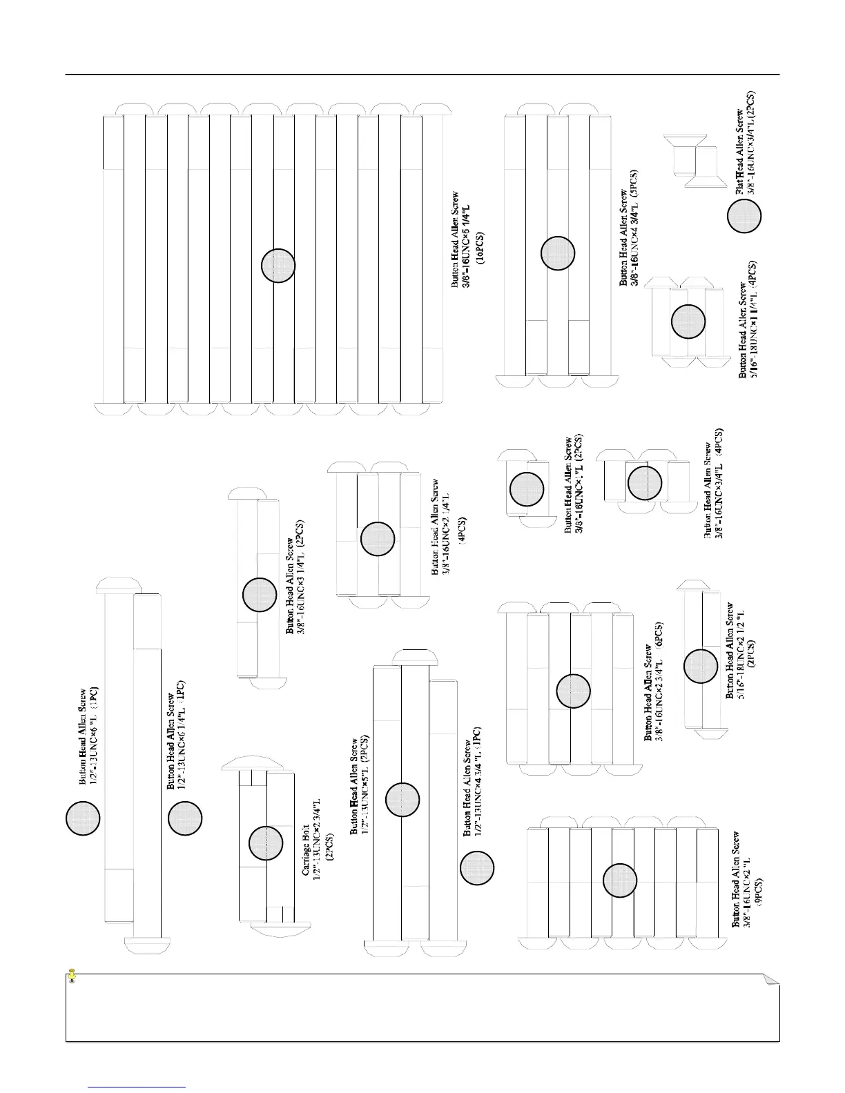NOTE: Hardware and assembly tools are not shown at actual size. Not all of the assembly hardware will be referenced in the chart. Some