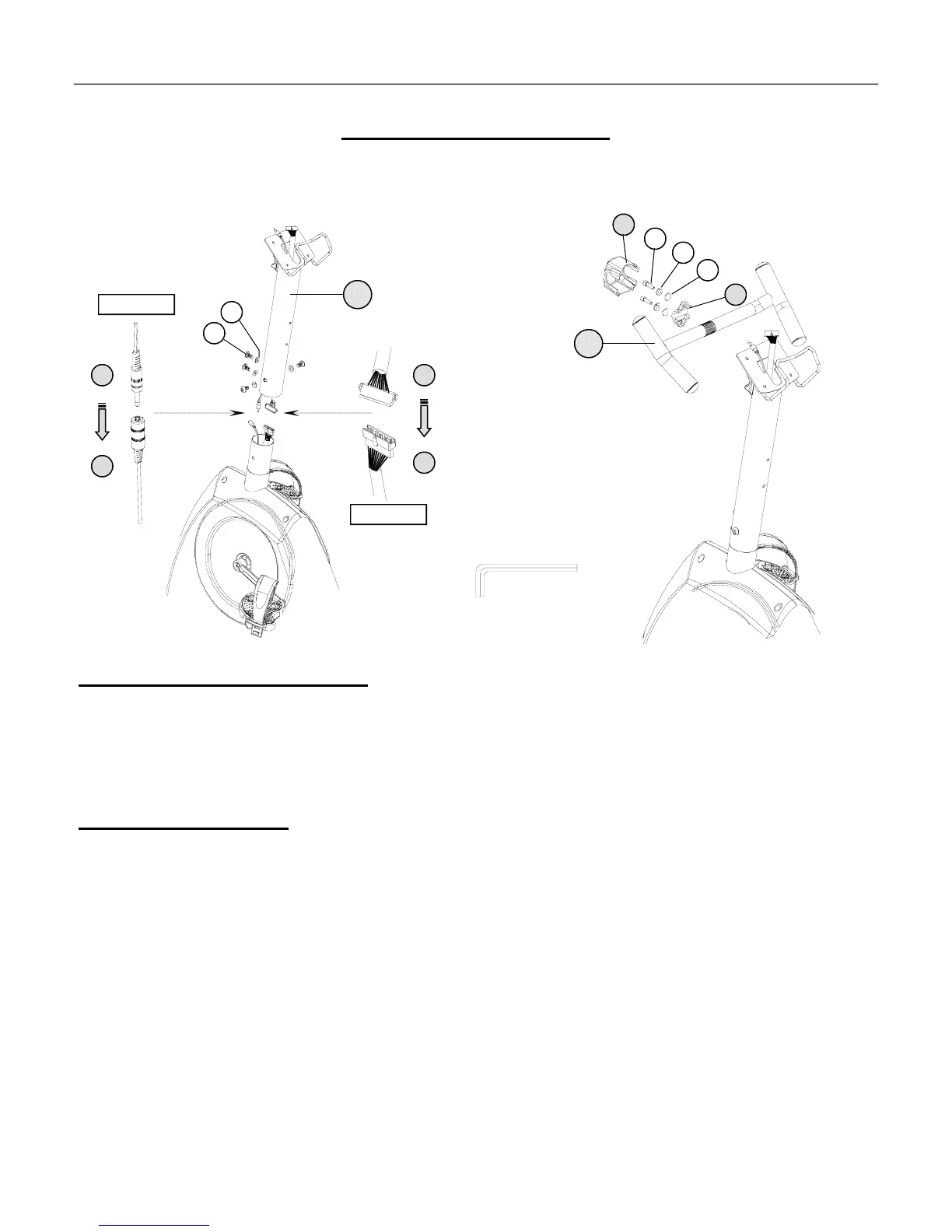 D) Tuck the excess cable lengths into frame tubing and slide the Handlebar Mast (#13) down on to the Base
