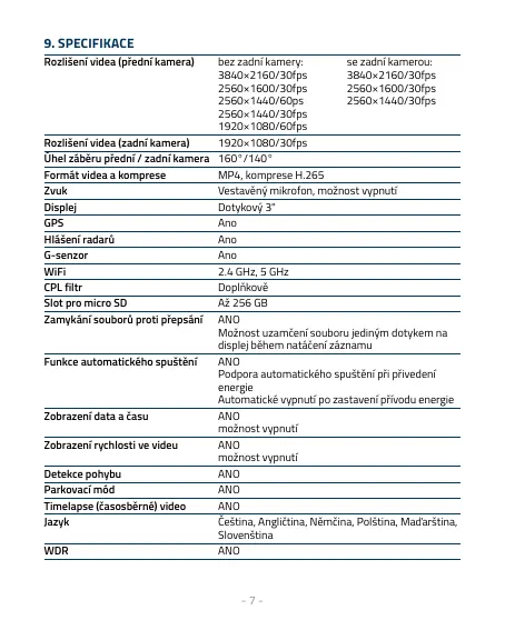 9. SPECIFIKACE