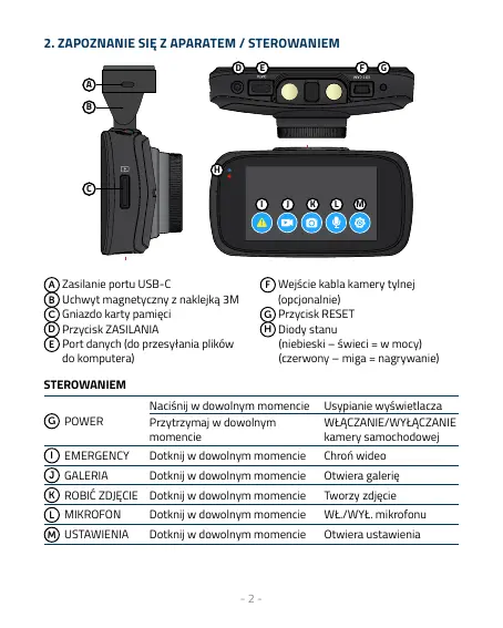 2. ZAPOZNANIE SIĘ Z APARATEM / STEROWANIEM