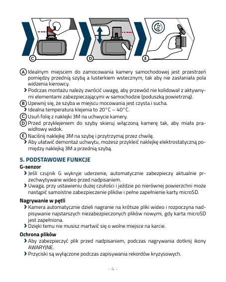 Przed przyklejeniem do szyby skieruj włączoną kamerę tak, aby miała pra-