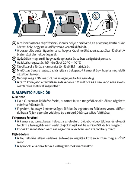 A műszerkamera rögzítésének ideális helye a szélvédő és a visszapillantó tükör