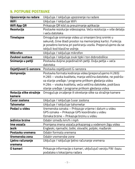 Upozorenje na radare Uključuje / isključuje upozorenje na radare
