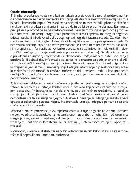 uređaja. Sve je određeno simbolom precrtanog kontejnera na proizvodu, ambalaži ili u