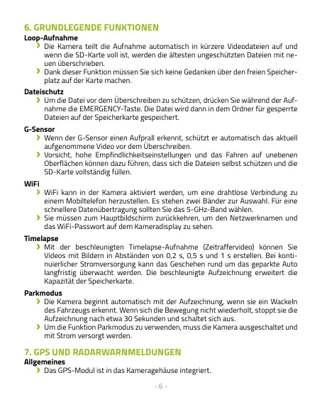 Um die Funktion Parkmodus zu verwenden, muss die Kamera ausgeschaltet und
