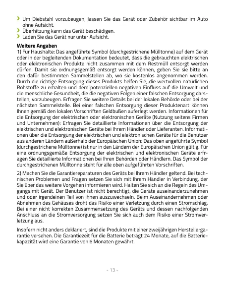 rantie versehen. Die Garantiezeit für die Batterie beträgt 24 Monate, auf die Batterie-