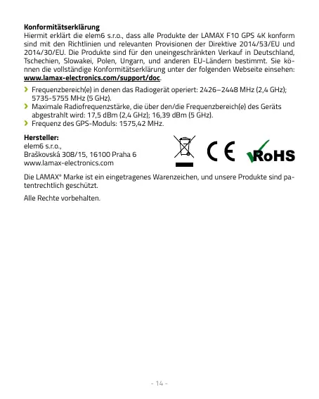 Hiermit erklärt die elem6 s.r.o., dass alle Produkte der LAMAX F10 GPS 4K konform