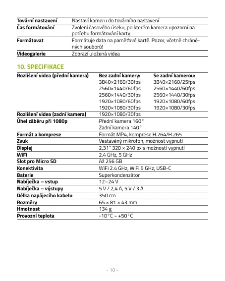 10. SPECIFIKACE