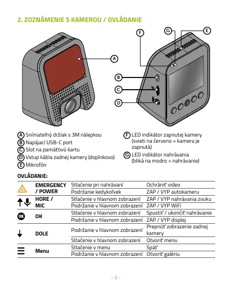 2. ZOZNÁMENIE S KAMEROU / OVLÁDANIE