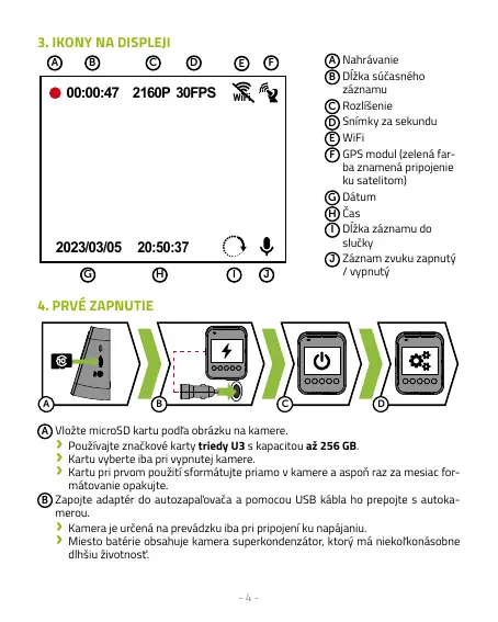 Používajte značkové karty triedy U3 s kapacitou až 256 GB.