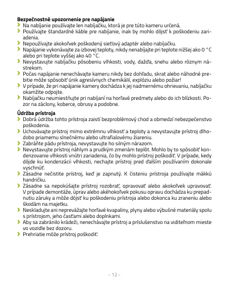 Na nabíjanie používajte len nabíjačku, ktorá je pre túto kameru určená.