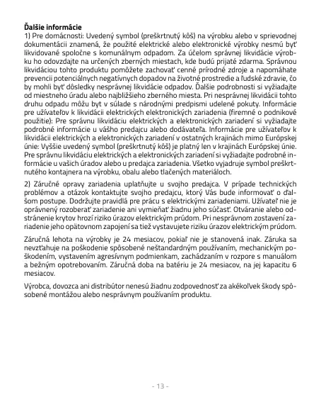 1) Pre domácnosti: Uvedený symbol (preškrtnutý kôš) na výrobku alebo v sprievodnej