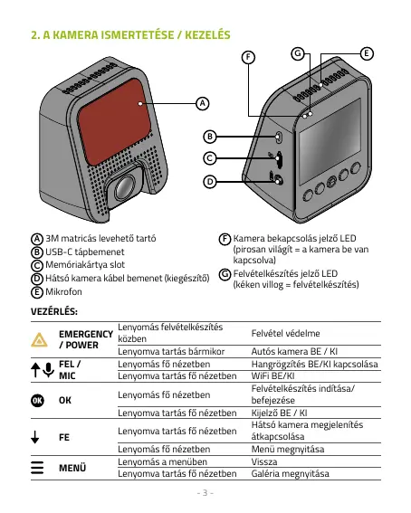2. A KAMERA ISMERTETÉSE / KEZELÉS
