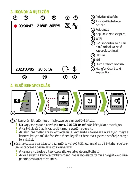 U3 vagy magasabb osztályú, max. 256 GB-os márkás kártyákat használjon.