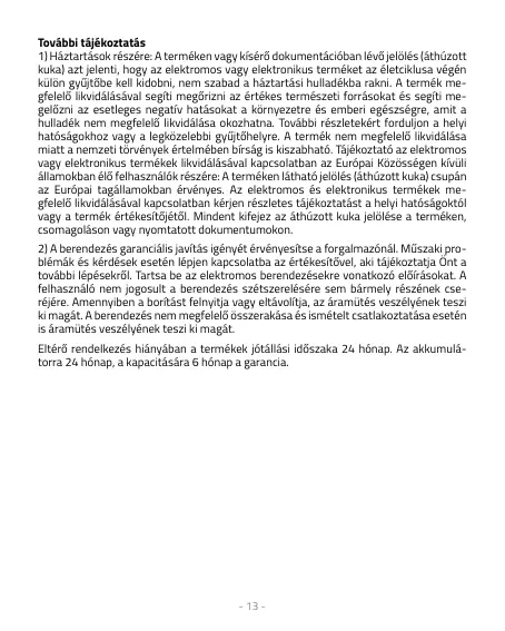 Eltérő rendelkezés hiányában a termékek jótállási időszaka 24 hónap. Az akkumulá