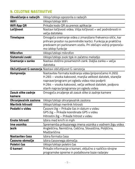 Obveščanje o radarjih Vklop/izklopi opozorila o radarjih
