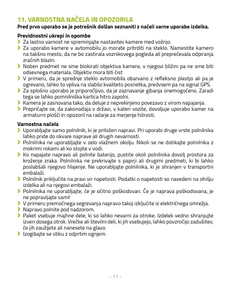 11. VARNOSTNA NAČELA IN OPOZORILA