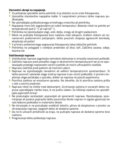 Za polnjenje uporabite samo polnilnik, ki je določen za to vrsto fotoaparata.
