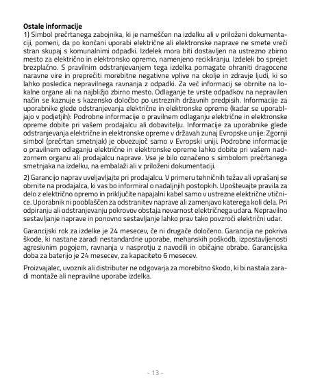 stran skupaj s komunalnimi odpadki. Izdelek mora biti dostavljen na ustrezno zbirno