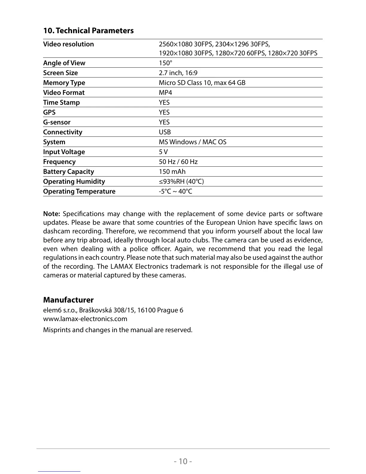 of the recording. The LAMAX Electronics trademark is not responsible for the illegal use of