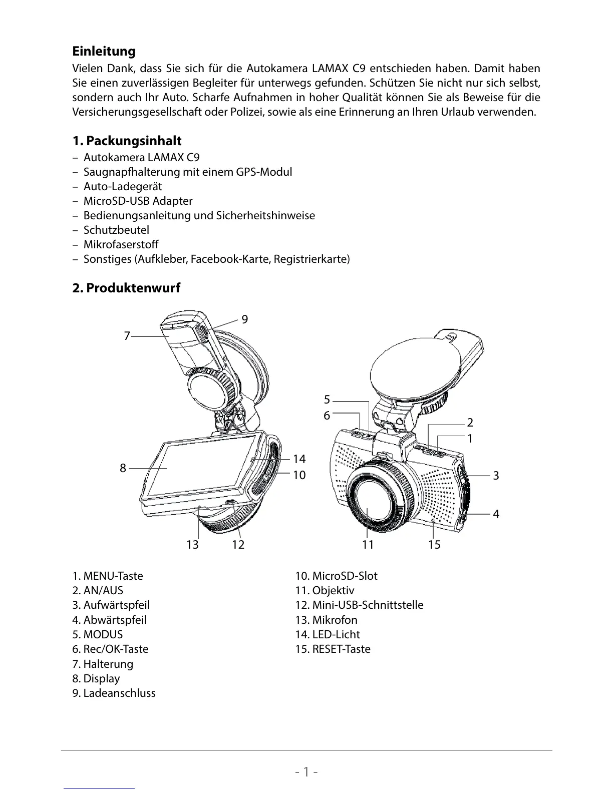 Vielen Dank, dass Sie sich für die Autokamera LAMAX C9 entschieden haben. Damit haben