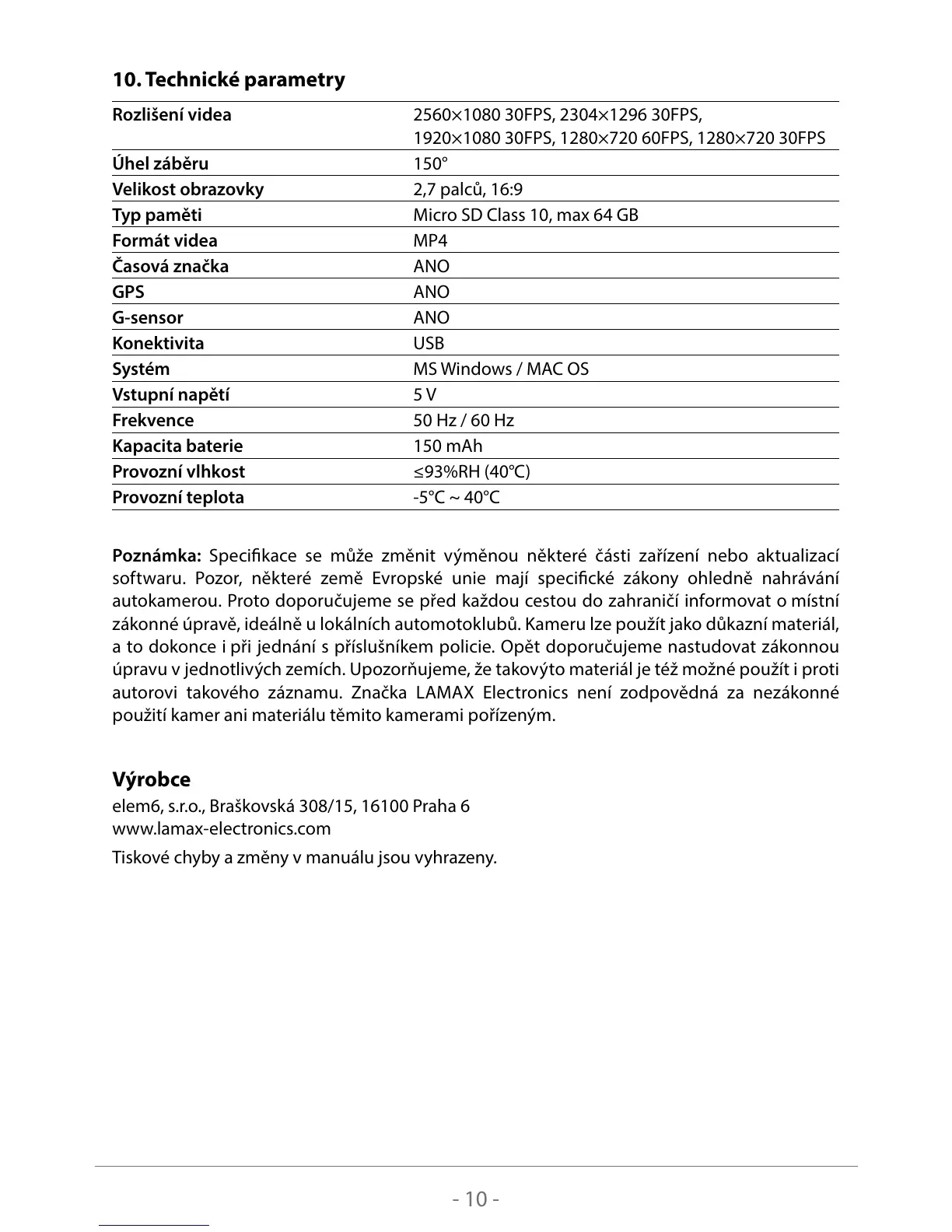 autorovi takového záznamu. Značka LAMAX Electronics není zodpovědná za nezákonné