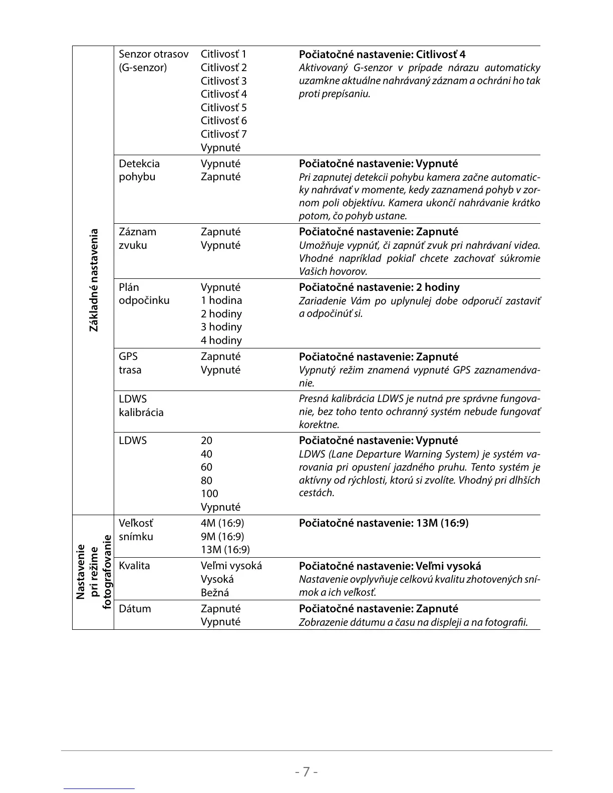 Počiatočné nastavenie: 13M (16:9)