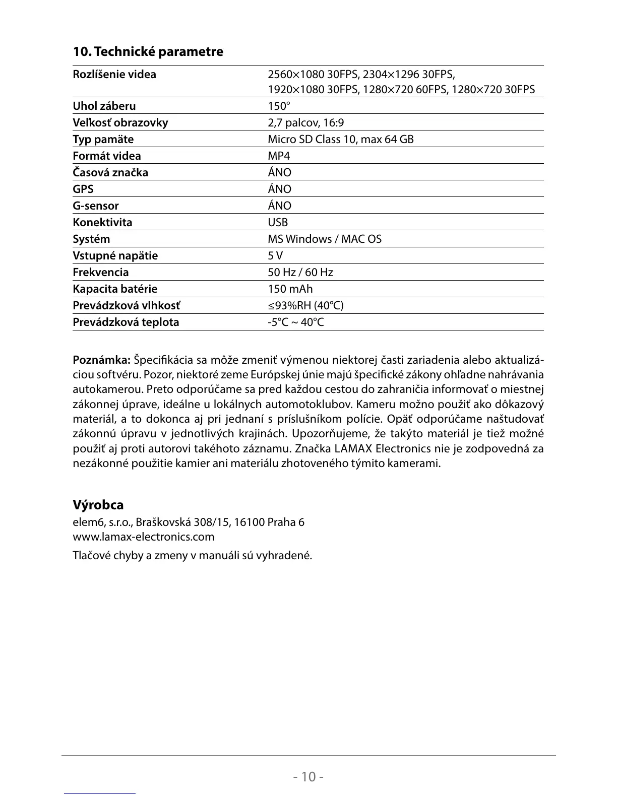 použiť aj proti autorovi takéhoto záznamu. Značka LAMAX Electronics nie je zodpovedná za