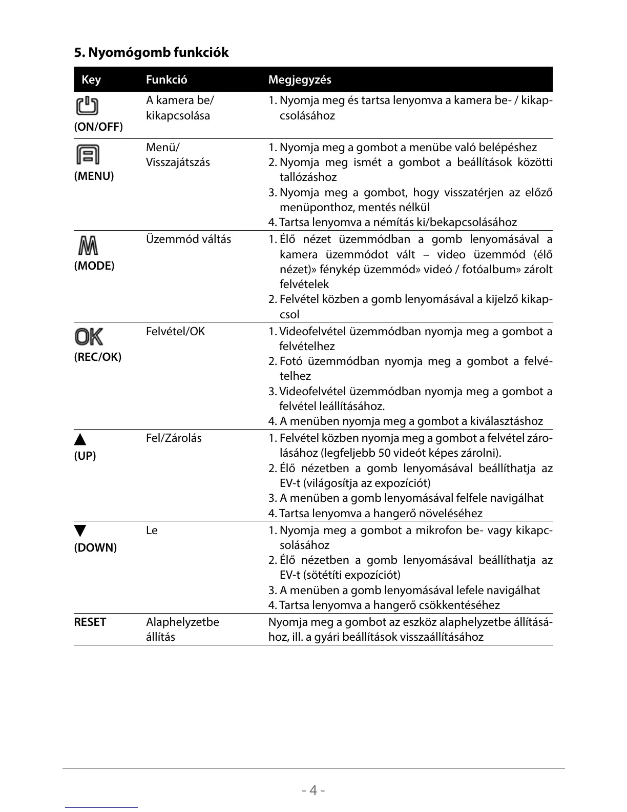 4. Tartsa lenyomva a hangerő csökkentéséhez