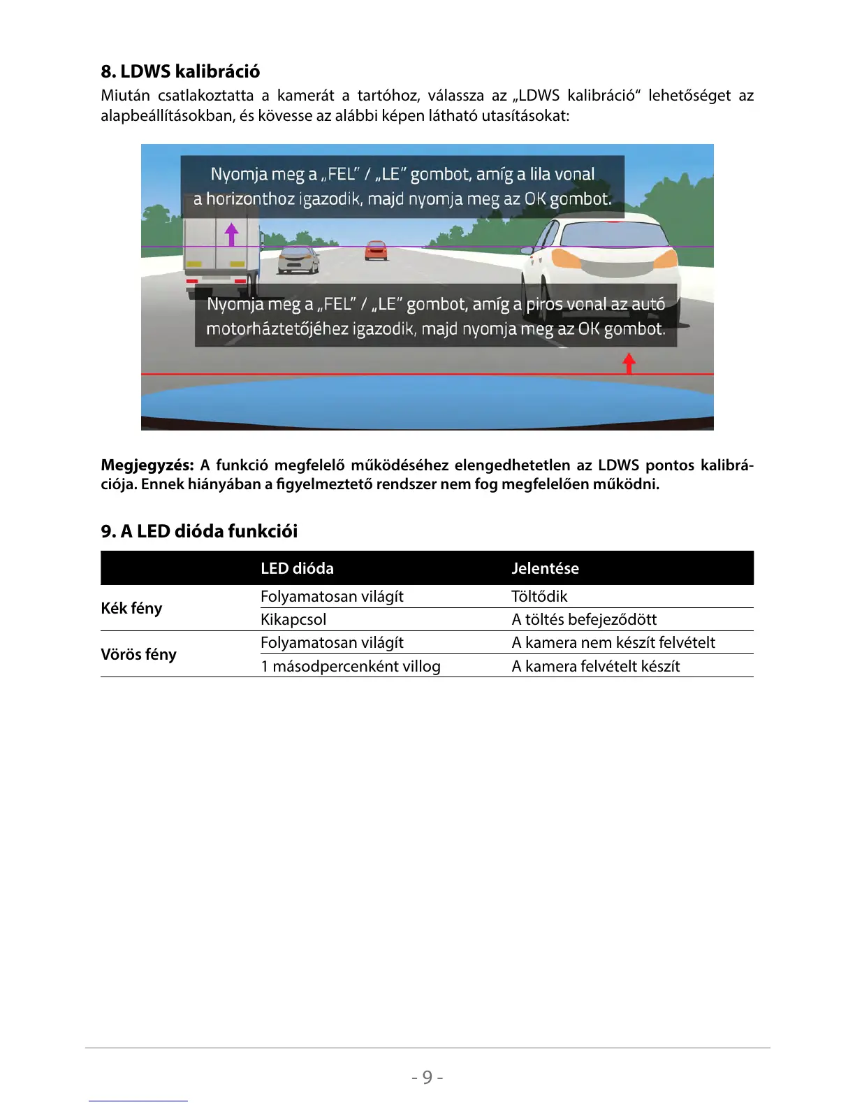 Megjegyzés: A funkció megfelelő működéséhez elengedhetetlen az LDWS pontos kalibrá-