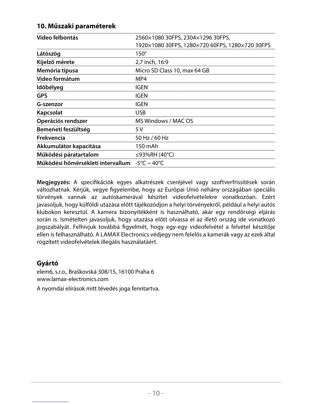 ellen is felhasználható. A LAMAX Electronics védjegy nem felelős a kamerák vagy az ezek által