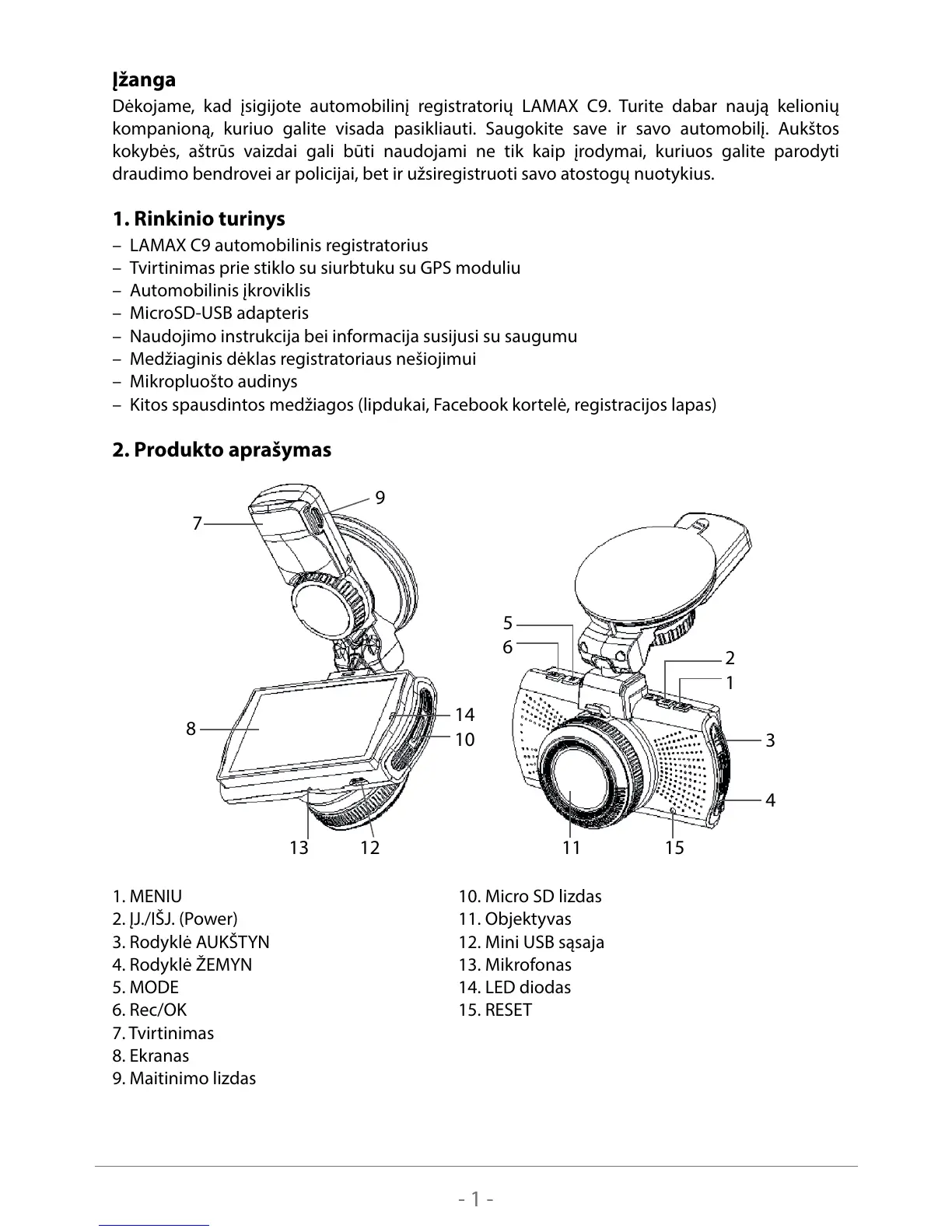 Dėkojame, kad įsigijote automobilinį registratorių LAMAX C9. Turite dabar naują kelionių